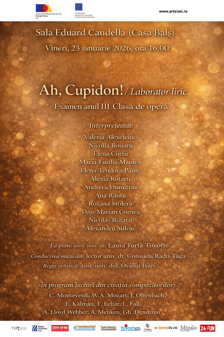 Vineri, 23 ianuarie 2026, de la ora 16.00, vă așteptăm în Sala Eduard Caudella (Casa Balș) la un Laborator liric al studenților din anul III de la Clasa de operă.