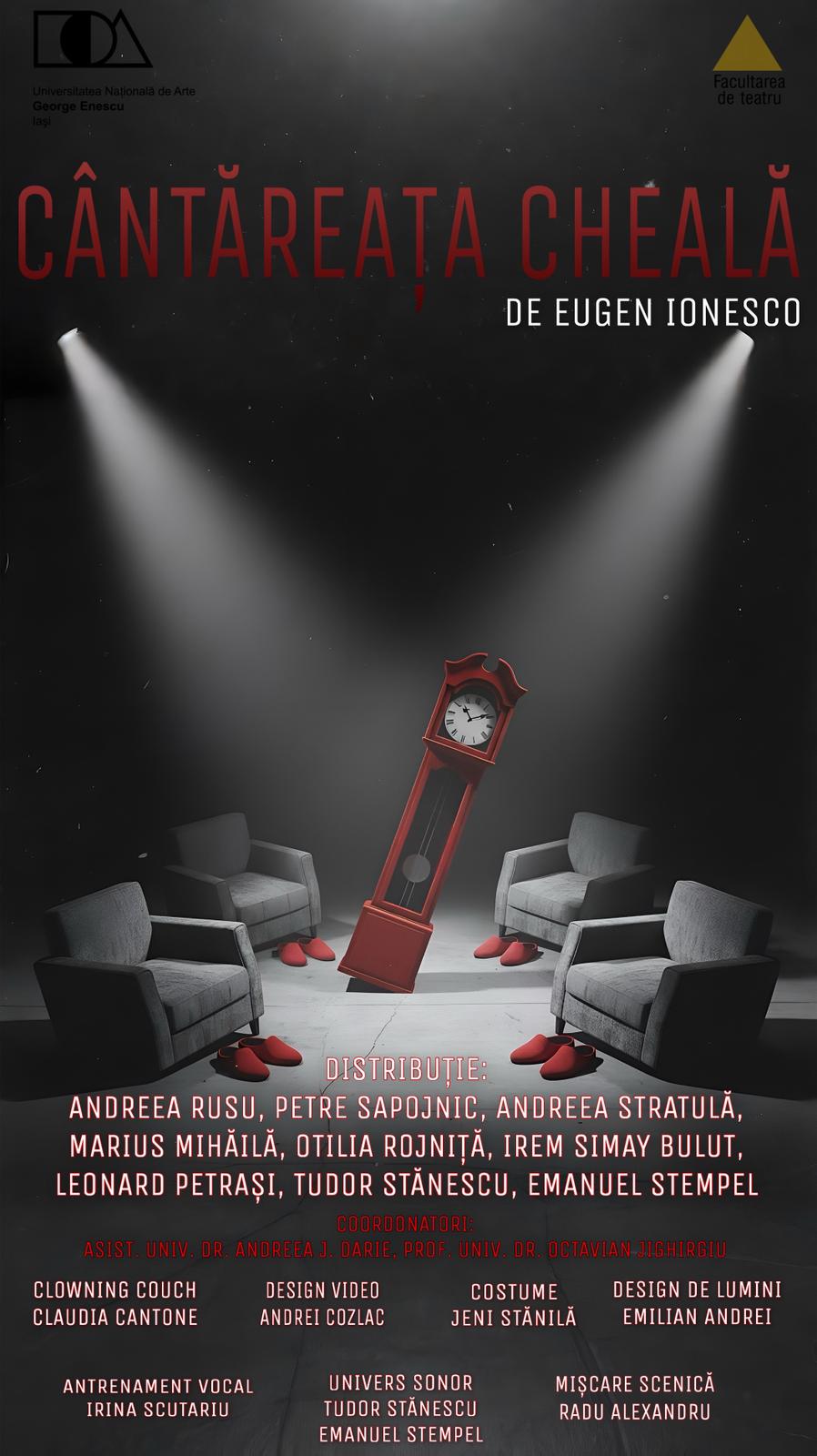 În „Cântăreața cheală”, cuvintele își pierd treptat sensul, devenind simple sunete sau automatisme verbale, oglindire perfectă a absurdității cotidiene și a unei fracturi de comunicare autentice în societatea contemporană. Actorii adoptă o estetică de joc în care predomină elemente de tehnică clovnească – gesturi mecanice, repetiții absurde, reacții exagerate, dar controlate, toate subliniind golirea de conținut a limbajului și a interacțiunii umane.