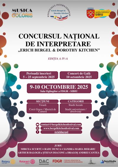 Odată cu începutul noului an academic, vă invităm să vă lansați într-o nouă provocare competițională Concursul de Interpretare Erich Bergel & Dorothy Kitchen – Ediția a IV-a.