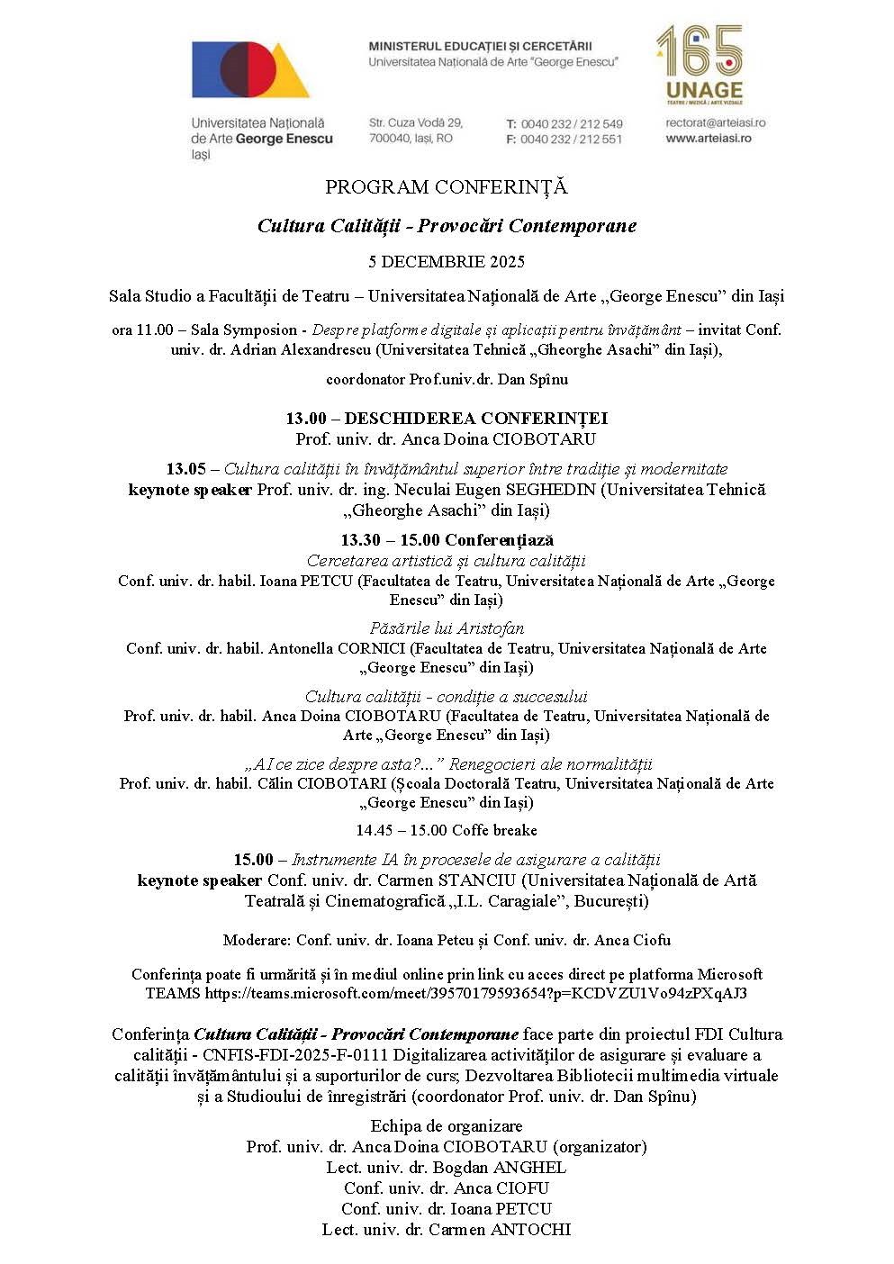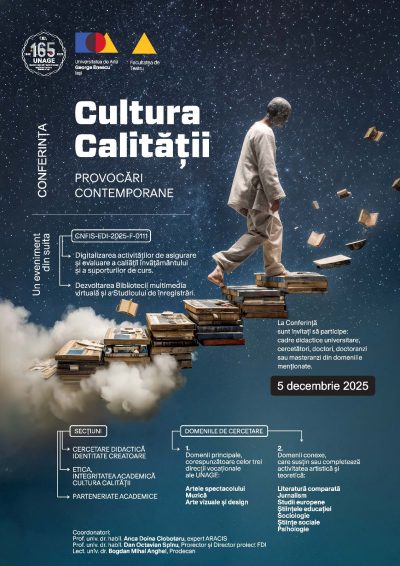Un eveniment din suita Cultura calității, parte a proiectului CNFIS-FDI-2025-F-0111, Digitalizarea activităților de asigurare și evaluare a caliății învățământului și a suporturilor de curs; Dezvoltarea Bibliotecii multimedia virtuală și a Studioului de înregistrări.