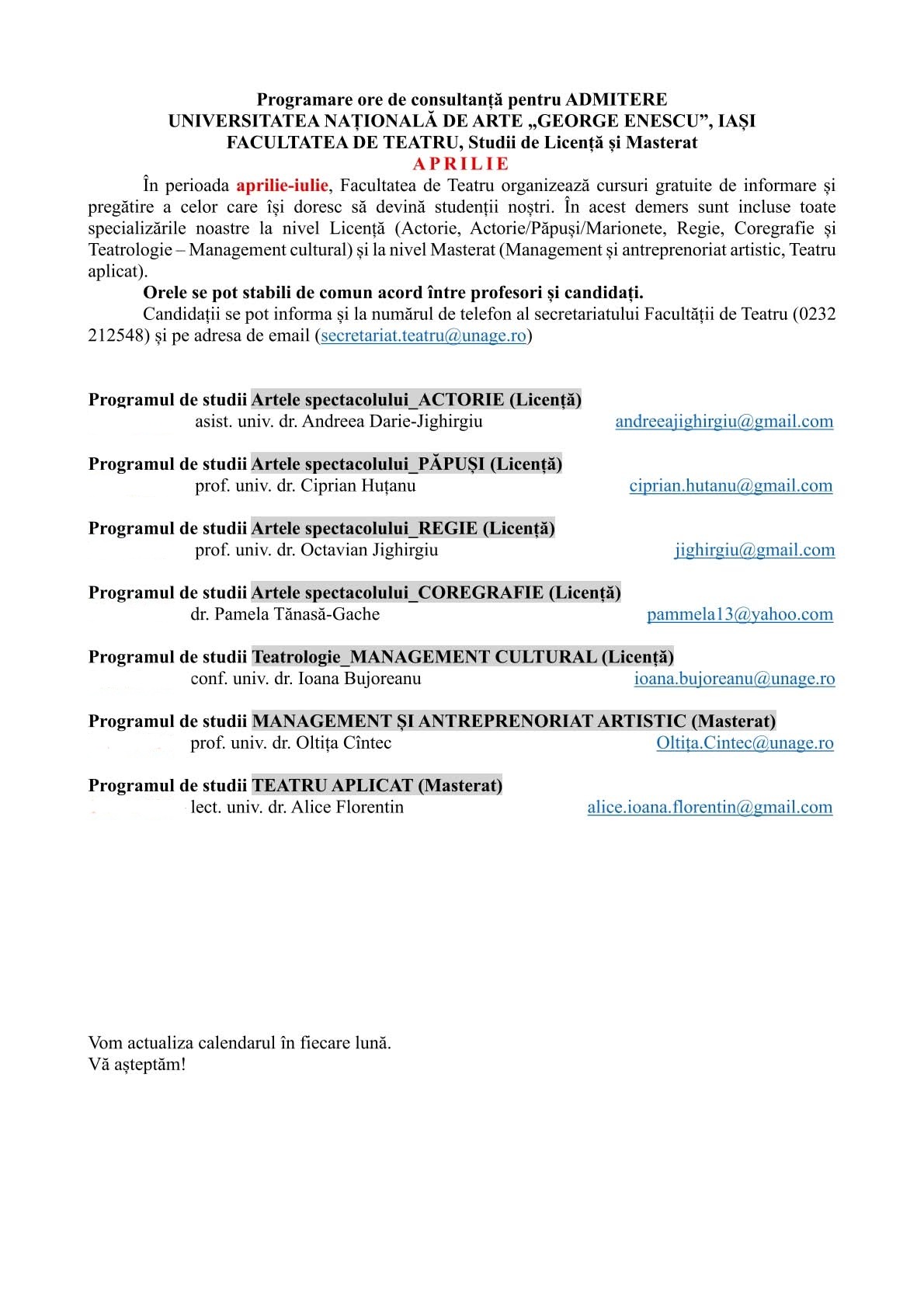 Facultatea de Teatru, UNAGE