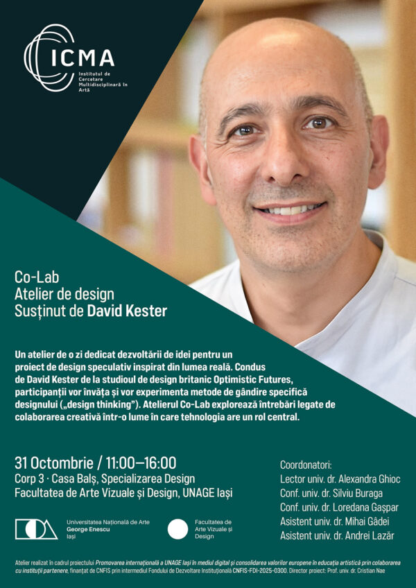 On October 31, 2025, the Institute for Multidisciplinary Research in Art together with the Design Specialization of the Faculty of Visual Arts and Design from Iași are organizing a workshop dedicated to developing ideas for a speculative design project inspired by the real world.