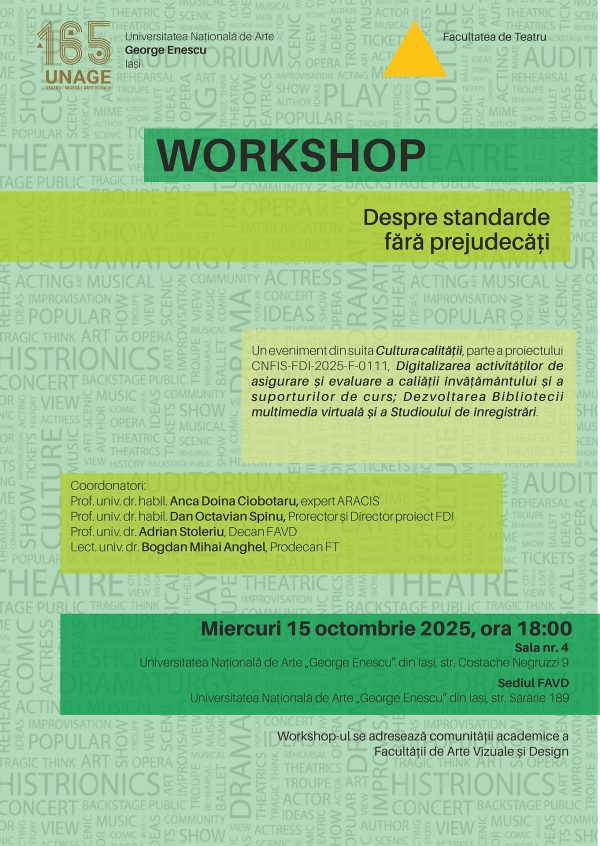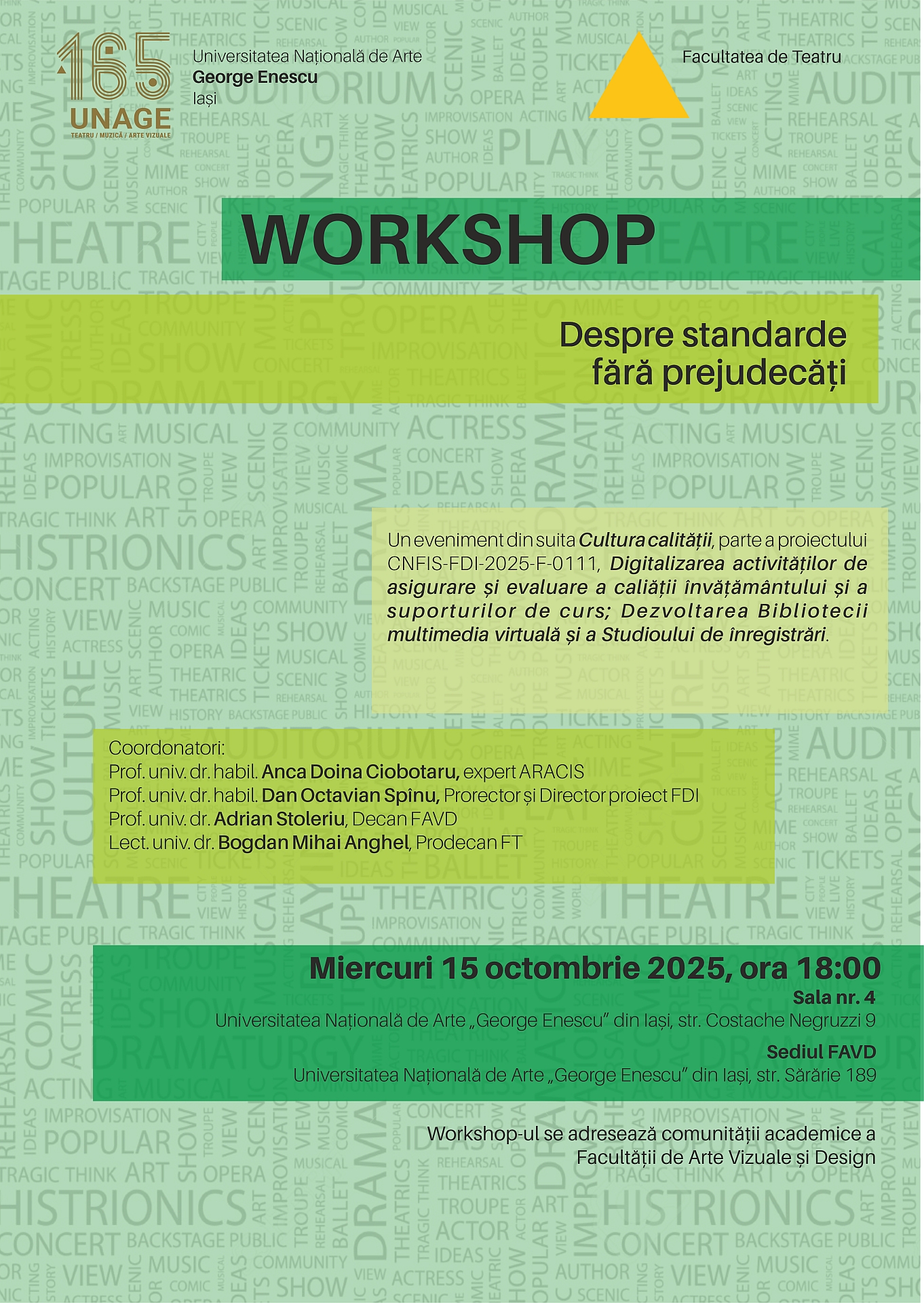 Un eveniment din suita Cultura calității, parte a proiectului CNFIS-FDI-2025-F-0111, Digitalizarea activităților de asigurare și evaluare a caliății învățământului și a suporturilor de curs; Dezvoltarea Bibliotecii multimedia virtuală și a Studioului de înregistrări.